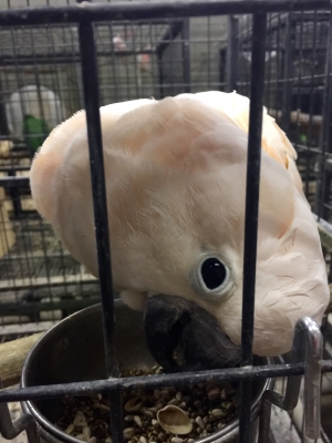 いつも電話中に「僕も僕も!」みたいにしゃしゃり出て来るので、電話に出るとケージの前にドッカと座って話をするんですが、それでも「ホホホホホ〜!」と飼い主の笑い声の真似を挟んで来るもんだから、相手は時々「?」となるようです・・。