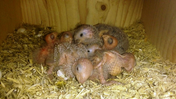 ウロコインコのヒナ巣箱の中で7羽確認できますね〜♪