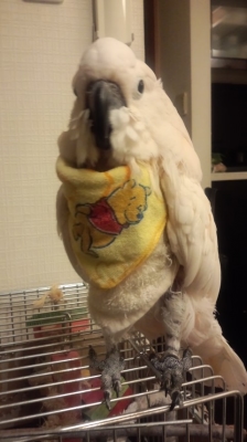 『おはよ』『ノアちゃんこんにちは』『おやっちゅみ』『バイバイ』『おいで』『ちーちゃん』『ええ子やね』『はいっ』は我家のインコ達の共通語。それに、それぞれの鳴真似も!何より困るのはコミドリコンゴウインコの鳴き真似。これだけは止めてほしい…。