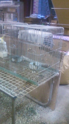 今日はジャングルで脱走騒ぎがありました、私が世話をはじめようと、表のシャッターを全開にして、食事の用意をしようと奥へ行きながらふと、見るとアオメキバタンの若造のケージがもぬけの殻…ハァ!と辺りを見渡しながらシャッターを降ろしに…居た!シャッターが完全に降りるまで動くな…と祈りつつ、倉庫の天井近くの空きケージの上にいるアオメキバタンを迎えに上がり、抱っこして降りました、お陰で服は真っ白に…叩いても叩いても白色が抜けません(笑)無事にケージに帰し1件落着(汗)疲れるわ、