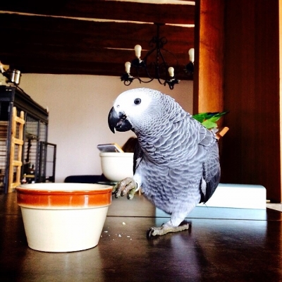 アオボウシインコが懐いてから次にヨウムを購入され現在2羽飼育してます