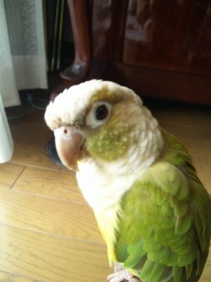 『おはよ』『ノアちゃんこんにちは』『おやっちゅみ』『バイバイ』『おいで』『ちーちゃん』『ええ子やね』『はいっ』は我家のインコ達の共通語。それに、それぞれの鳴真似も!何より困るのはコミドリコンゴウインコの鳴き真似。これだけは止めてほしい…。