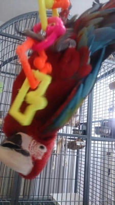暖かくなってくると、やっぱりインコ達も嬉しい様で、もう過ぐ2歳になるベニコンゴウインコのパンちゃんは、放鳥中も所せましと動き回っています。