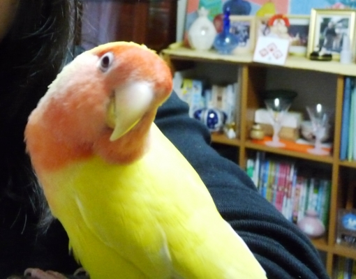 『おはよ』『ノアちゃんこんにちは』『おやっちゅみ』『バイバイ』『おいで』『ちーちゃん』『ええ子やね』『はいっ』は我家のインコ達の共通語。それに、それぞれの鳴真似も!何より困るのはコミドリコンゴウインコの鳴き真似。これだけは止めてほしい…。