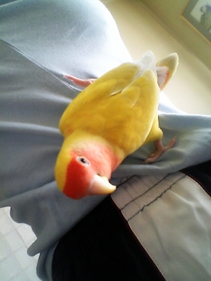 『おはよ』『ノアちゃんこんにちは』『おやっちゅみ』『バイバイ』『おいで』『ちーちゃん』『ええ子やね』『はいっ』は我家のインコ達の共通語。それに、それぞれの鳴真似も!何より困るのはコミドリコンゴウインコの鳴き真似。これだけは止めてほしい…。