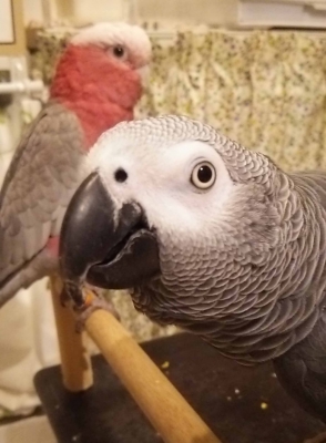 『おはよ』『ノアちゃんこんにちは』『おやっちゅみ』『バイバイ』『おいで』『ちーちゃん』『ええ子やね』『はいっ』は我家のインコ達の共通語。それに、それぞれの鳴真似も!何より困るのはコミドリコンゴウインコの鳴き真似。これだけは止めてほしい…。