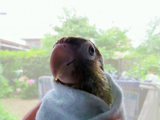 あーちゃんさん、相変わらずスパルタンな水浴びで(笑)私も掃除の序でにオオバタンとヨウムをケージごと洗いました、