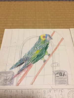 『おはよ』『ノアちゃんこんにちは』『おやっちゅみ』『バイバイ』『おいで』『ちーちゃん』『ええ子やね』『はいっ』は我家のインコ達の共通語。それに、それぞれの鳴真似も!何より困るのはコミドリコンゴウインコの鳴き真似。これだけは止めてほしい…。