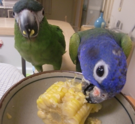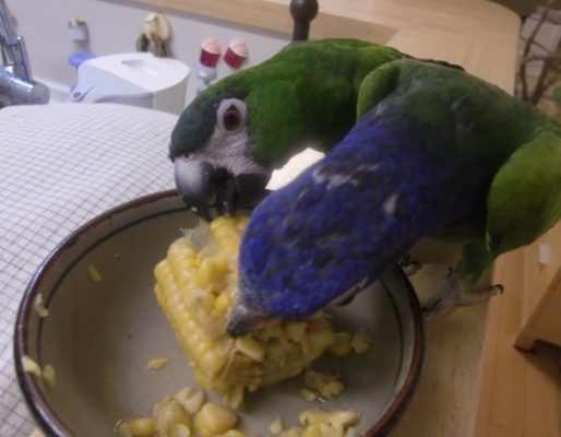 この2羽、実は今までトウモロコシを全く無視していたくせに。