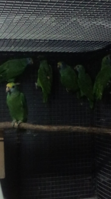 じゃあ今日はケージで挿し餌など様子を見ていたキンガオボウシが禽舎デビューした画像を貼って置きます