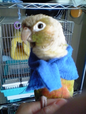 みなさん、こんばんは、ジルバさん、クーちゃん可愛い(*^o^*)マフラーですか?私自身は犬や鳥の服には関心はありません!しかしマコちゃんの毛引きを阻止出来るのでは…と云う安易な気持ちからマコちゃんにぴったり(笑)と考えています(・_・;)まぁ、サイズもtotoronomeiさんに聞いたので後は買うだけさぁ−!ぼちぼち寝るわ、無呼吸症候群が今から寝て4時頃起きて…脳内酸素足らんから(笑)居眠り運転?