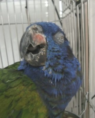 オオハナインコの鼻は丁度コザクラインコみたいに上の羽で隠れてます