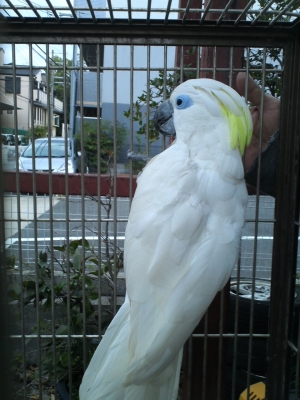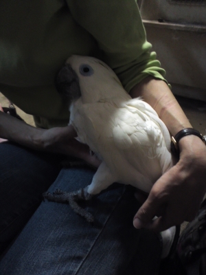 まいど!ふふふ…ベタなれのオオバタンの女の子が来たのよ!すごく可愛いくって甘え上手でだけど毛引きやってるから服を着せたら…何てね(笑)考えたわけ!エリザベスカラーより見た感じはいーかななんて!大人しいから着せ替えバタンが出来るかも(笑)服着せたら羽根を咬む事が出来ない…ね!自分では作れないし?出来たらジーンズの生地なら最高、だれかぁー!たのんだよ!ではしかし今夜はすごく冷えますが皆さん、風邪など引かないように気を付けてくださいね!もう寝ます…おやすみなさい(-.-)zzZ(by美少年)