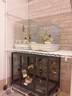 我家のインコ達、種類も性別もサイズもバラバラ…。なのに、常にお互いに妙なライバル心がある様で(^^)