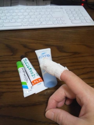 朝っぱらからシロハラ夫婦に噛まれ人差し指を