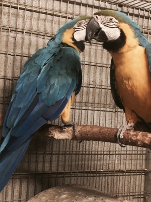 『おはよ』『ノアちゃんこんにちは』『おやっちゅみ』『バイバイ』『おいで』『ちーちゃん』『ええ子やね』『はいっ』は我家のインコ達の共通語。それに、それぞれの鳴真似も!何より困るのはコミドリコンゴウインコの鳴き真似。これだけは止めてほしい…。