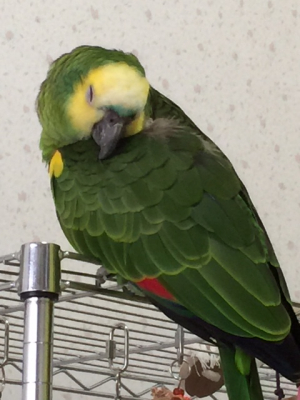 『おはよ』『ノアちゃんこんにちは』『おやっちゅみ』『バイバイ』『おいで』『ちーちゃん』『ええ子やね』『はいっ』は我家のインコ達の共通語。それに、それぞれの鳴真似も!何より困るのはコミドリコンゴウインコの鳴き真似。これだけは止めてほしい…。