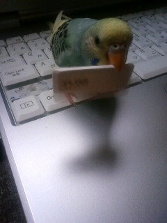 『おはよ』『ノアちゃんこんにちは』『おやっちゅみ』『バイバイ』『おいで』『ちーちゃん』『ええ子やね』『はいっ』は我家のインコ達の共通語。それに、それぞれの鳴真似も!何より困るのはコミドリコンゴウインコの鳴き真似。これだけは止めてほしい…。
