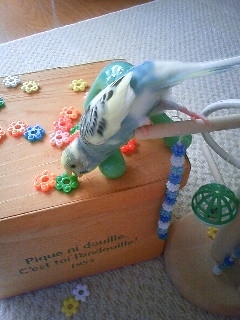 個々に教えても、どれもうまくいかない事が多いのに、最近は何でも1羽が出来る様になると、直ぐに他の仔達にも広まって楽と言えば楽ですが、問題なのは悪さやイタズラもすぐに皆で真似をすること(^^;