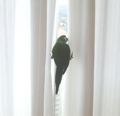 あーちゃんさん宅のカーテンはそのうち鳥まみれになり、穴があけられ、形が変わり…となるのでしょうか?