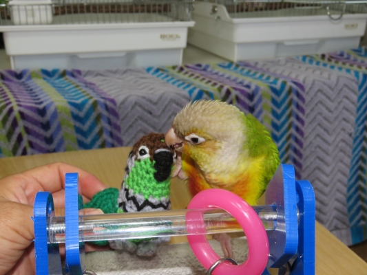 あーちゃんさんのところにもヨウムちゃんがいるし、マコウさんもいっぱい飼っているし、わからないことがあったらすぐ聞くので教えてください!