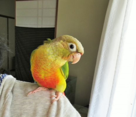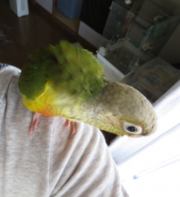 リリィ〜ちゃん肩に止まった写真穏やかな優しそうな顔してますね!