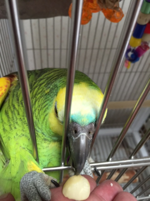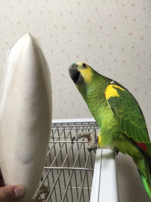 あきらさん、アオちゃんは見た目より食べないんですかね?(笑)ジャングルの鳥はスィートコーンを一本まるまる掴んでケージをよじ登り、とまり木で食べます!