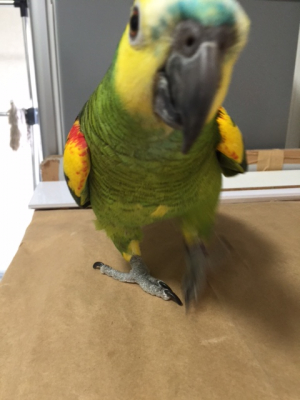 ニョオウインコ最近は床の上を飛ぶように羽ばたきしながらもの凄い勢いで走り回っています。