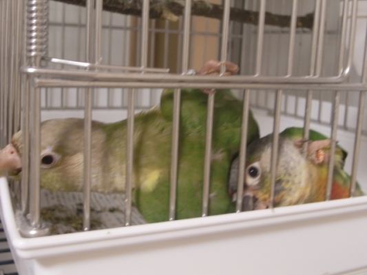 我家でいえば、♂のアケボノインコあーちゃんと性別不明1歳のコミドリコンゴウインコのドリーペアの様におかしな関係の2羽になってしまうかもしれません…(汗)