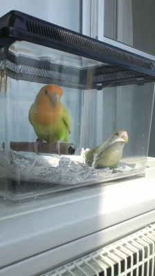 我家のインコ達、種類も性別もサイズもバラバラ…。なのに、常にお互いに妙なライバル心がある様で(^^)