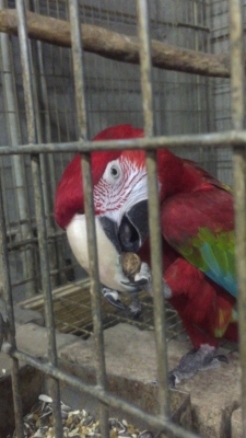 昼から仕事に出る時にジャングルに寄り、序でにベニコンゴウに鬼胡桃をあげました、一瞬で割る様子を撮りましたので・・・