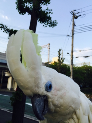 これも白色オウムの魅力の一つ(*^_^*)