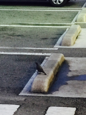 夕方雨が止んでからヒロシのエサやりを始めたら、ムクドリが寄って来ました。
