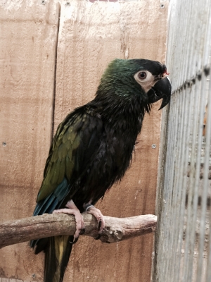 今朝、禽舎の世話をしていると、水入れの水が汚れ、周りに飛び散りかなり水量が減っていました、そうです、ベニコンゴウインコやキンガオボウシインコ達が派手に水浴びをしたようなんです、(笑)屋内での大量水浴びには背中にタンクを背負うタイプのスプレー噴射が要りますね(笑)ホームセンターに探しに行ってみないと、楽々水浴びを目指してそう、私の為に(笑)