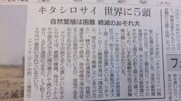 2月14日朝日新聞夕刊より 2月14日朝日新聞夕刊より