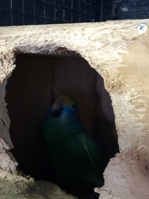 >おまけにコミドリコンゴウインコは、普段から♂のハズ君が♀の為にか果物とかをくわえたまま巣箱に入っていくのですが、こんな調子だとそのうち巣箱内にカビが生えないかちょっと心配になります。