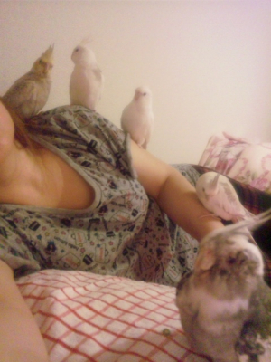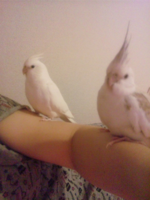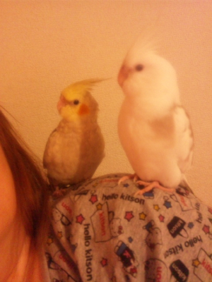 生後3か月程。シナちゃんパールちゃん ペアのあびちゃんとファローちゃん ヒナ4羽と7歳のぴちゅーちゃん