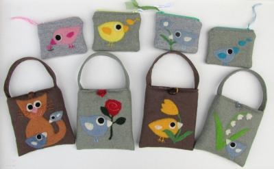 羊毛刺しゅうの小鳥のミニバッグ&小銭入れ(カードケース)が入荷しました。