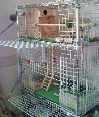 ケージはスチールラックをまたまた100均の網とホームセンターで買った網で手作りしてます