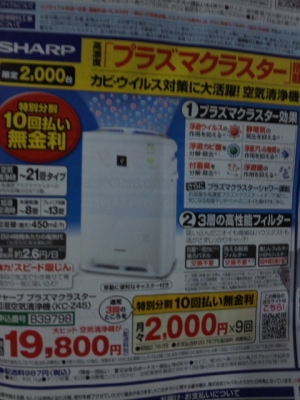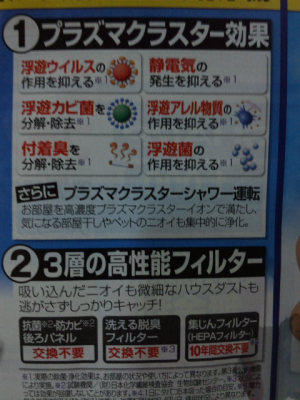 シャープのプラズマクラスター、我が家ではヒーターについていますので寒い間はそれを使っていましたが、効果の程は・・・