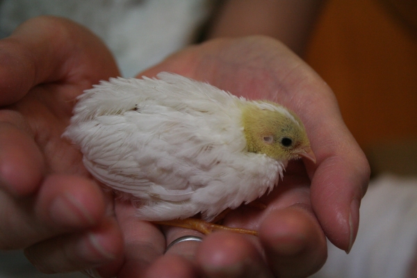 白ウズラってヒナの時は頭だけ黄色なんですね。