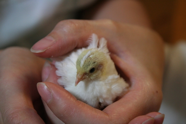 ヒメウズラに話しかけたり、ケージの中に手を入れておくとなれると思います