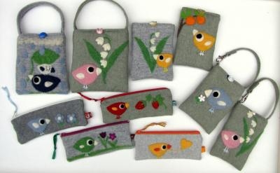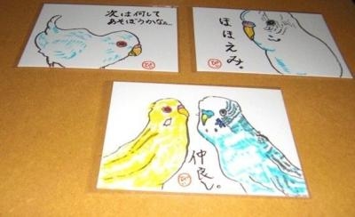 羊毛刺しゅうの小物大集合 & ぴぃまる絵手紙ポストカード セキセイインコ