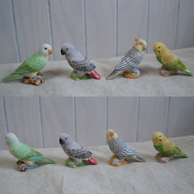 アメリカよりオキナインコ、セキセイインコ、オカメインコ、ヨウムの掌サイズのフィギュアやマグネットが入荷しました。