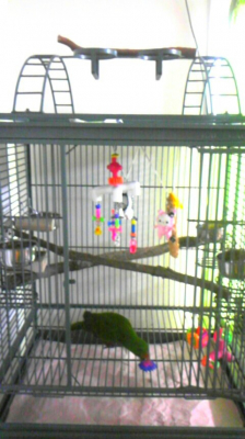 おもちゃは、鏡付きのものと左側には思考タイプのもの、それと鳥用まごの手?を入れていましたが、最後のはお湯の暖房を使用していたせいか色落ちしてきたので外してしまいました。気に入っていたみたいで咬まれそうになったんですけど(汗)