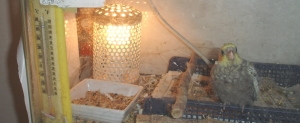一番いい保温の環境は、写真でも紹介しているように100Wくらいの裸電球(白熱灯)を熱源として、魚を飼うガラス水槽などで上面を開放する方式です。暑がれば、熱源を遠ざけてやり、寒がれば近づけてあげます。大切なのは、たとえ35度あっても40度あっても、鳥が寒がっていれば、保温してあげることです。それは、病状によってもちがうし、個体差もあります。