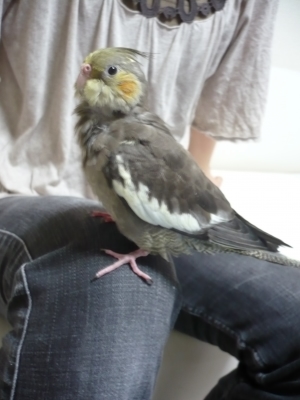 保護したオカメちゃん。とりあえず、「みな」と名付けて一週間。最初は警戒心と恐怖からか、かなり威嚇状態だったけど、最近は慣れて、頭をスリスリさせてくれたりしてます。
