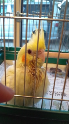 どうもショップで餓死寸前だったところで私にごはんを沢山与えられたと認識したせいか、籠の中でも必死で食べ続けているというのに放鳥した途端私の顔を見るなりジャージャーでなくピィピィと小さく鳴いて掌や指先をつつき「ごはんくれ」要求をしては手の上にえさをのせてやると必死で食べ始め、満足すると人の顔をじっと見て首をかしげてからふっくらして毛繕いを始める。の繰り返しです。
