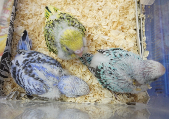 一か月過ぎのセキセイの中ヒナ2羽がいます。