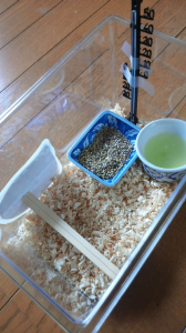中で羽ばたかれて水におがくずが入りまくってます(泣)